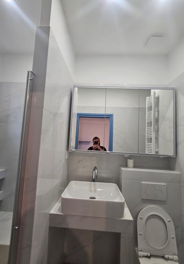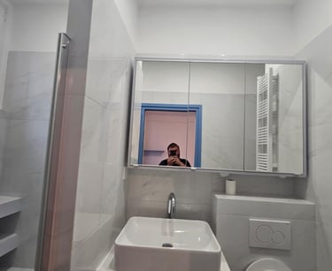 La salle de bain et les toilettes ont fait l’objet d’une rénovation complète : isolation renforcée, choix de matériaux résistants à l’humidité et installation d’équipements modernes pour un maximum de confort.