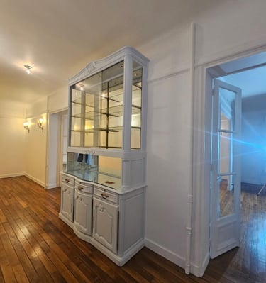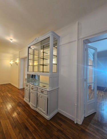 Certaines cloisons ont été déplacées afin de redéfinir la circulation intérieure et d’optimiser les volumes. Cette redistribution permet d’agrandir les espaces de vie et de créer une harmonie fonctionnelle dans l’ensemble de l’appartement.