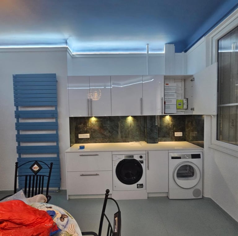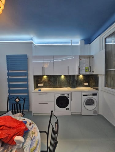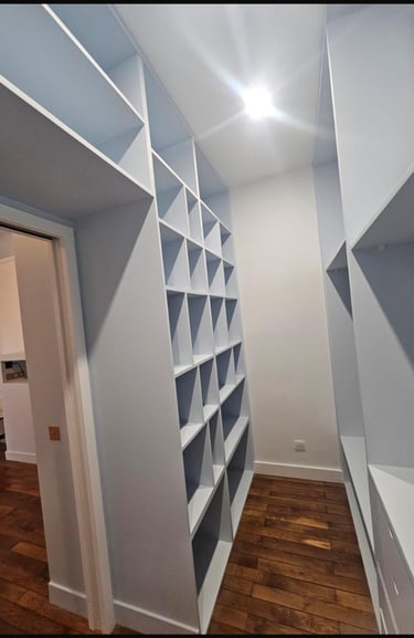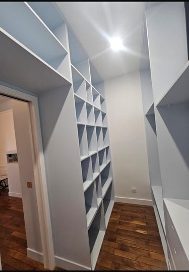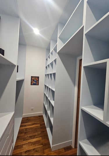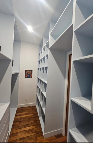 Nous avons conçu et installé des meubles intégrés adaptés aux besoins de la famille : dressings, rangements optimisés et une cuisine repensée pour allier esthétisme et praticité. Chaque détail a été pensé pour maximiser les volumes et améliorer le confort du quotidien.