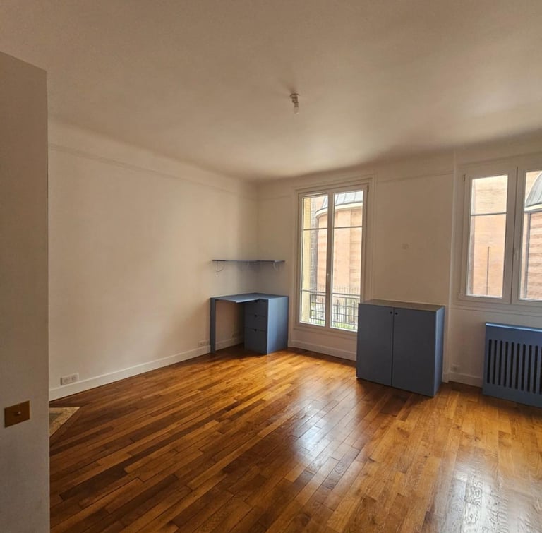 Un soin particulier a été apporté aux revêtements : rénovation du parquet, réalisation d’une chape et pose de carrelage de qualité. Ces choix apportent chaleur et élégance aux différentes pièces de l’appartement.