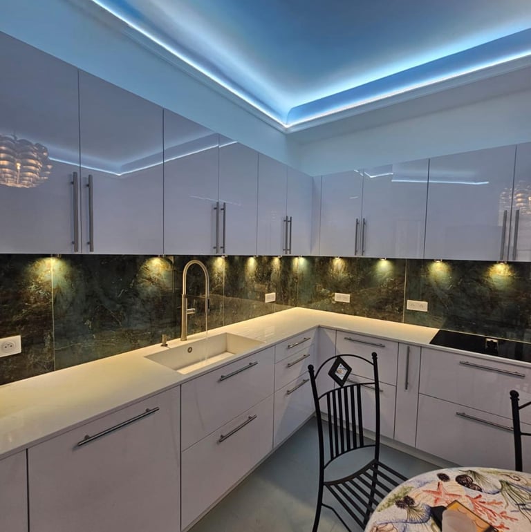 L’attention aux détails a guidé la phase finale du projet : enduits, peintures soignées, moulures décoratives et finitions précises qui valorisent chaque pièce et donnent une atmosphère élégante et raffinée.